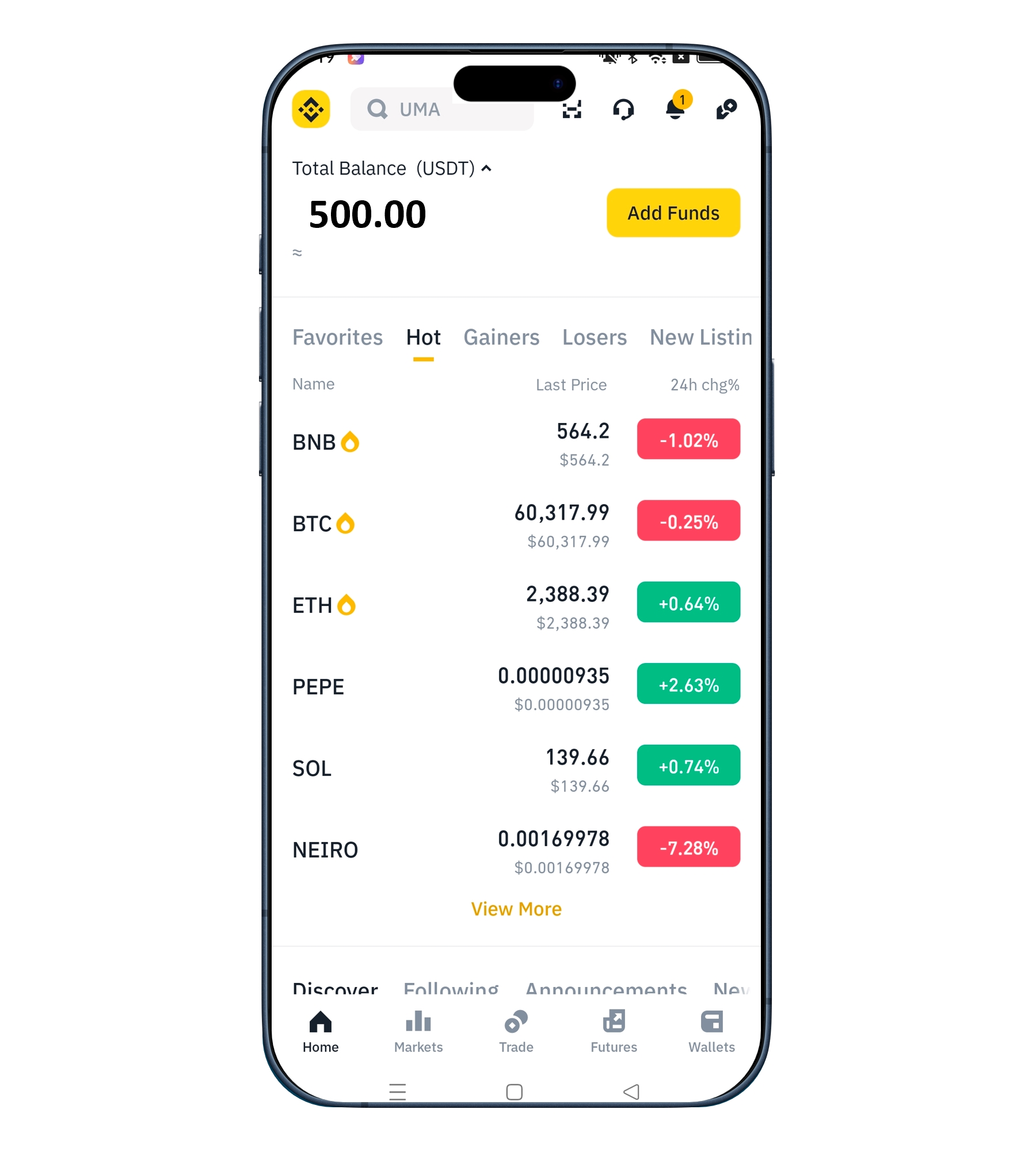 Pastikan Anda telah menyetor setidaknya USDT 500 ke dompet pertukaran Binance Anda.